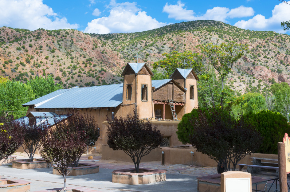 High in the foothills of the Sangre de Cristo Mountains some 40 miles north of Santa Fe, El Santuario de Chimayó is considered one of the truly holy places in America. Known as the “Lourdes of America,” the tiny mission church is a center for many points of pilgrimage and prayer. Built on a site believed by several cultures and faiths to have miraculous healing powers, the church draws thousands of people making a pilgrimage each year during Holy Week. Visitors are always welcome.