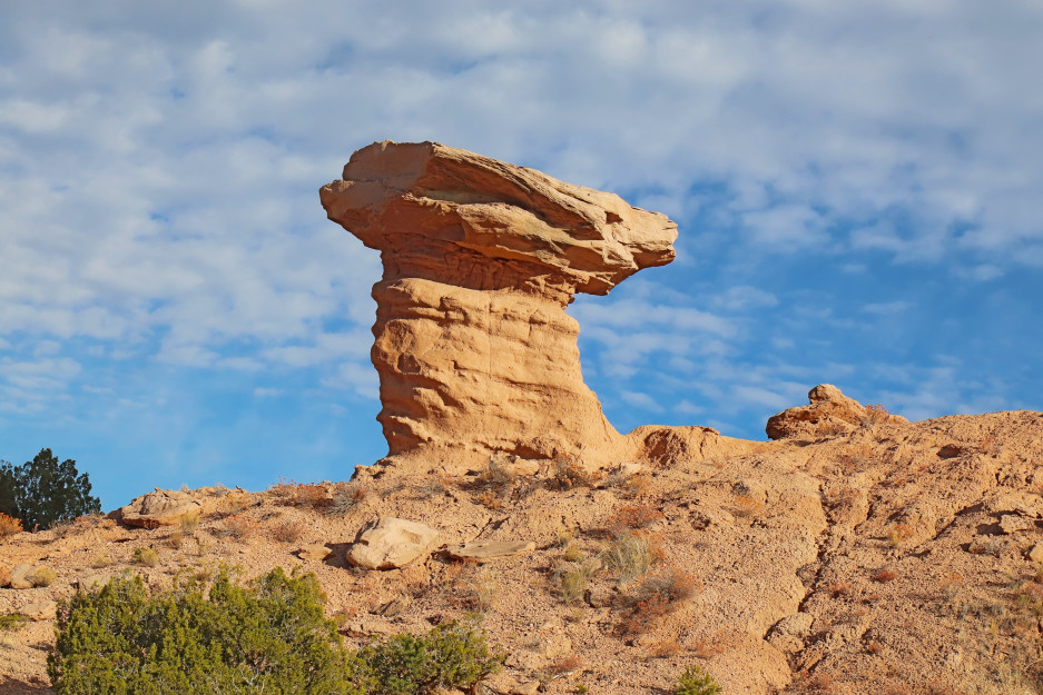 A 10-mile drive north from Santa Fe takes visitors to the Tesuque Pueblo, located off US 84/285 in the Sangre de Cristo foothills. Established around 1250, Tesuque is one of the oldest pueblos in the Southwest and, with a population of 800, one of the smallest pueblos. Tesuque Pueblo holds fast to its traditional religious beliefs and ceremonies. Throughout the year, the pueblo celebrates with feasts and dances. The public is welcome at the celebrations, but visitors are asked to follow pueblo rules. The pueblo is also home to Camel Rock, a naturally eroded sandstone formation that resembles a camel’s head.