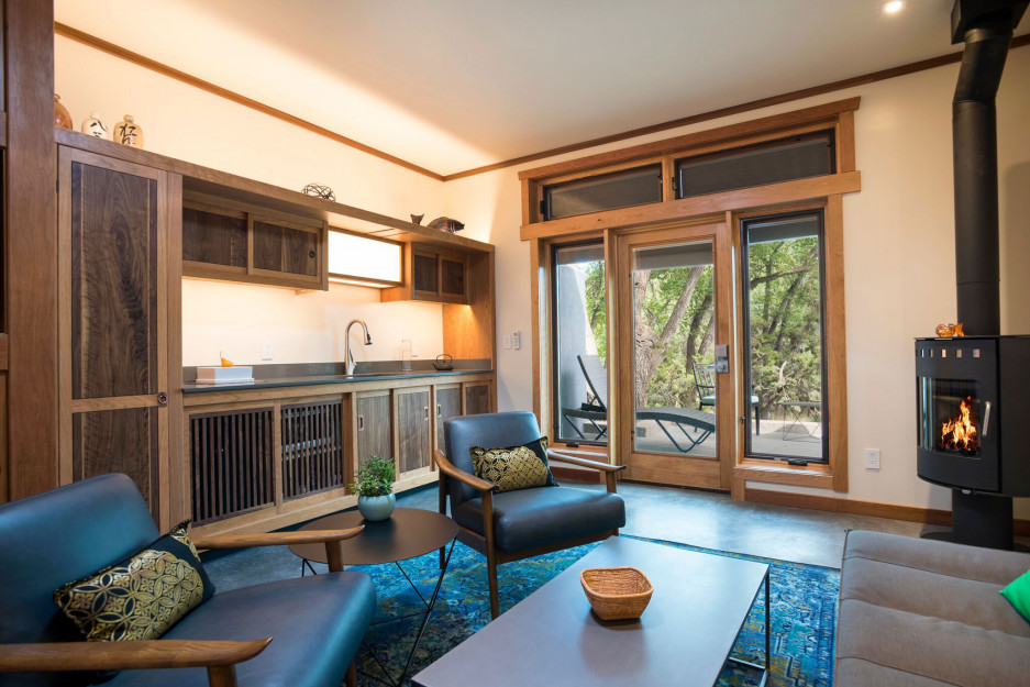 In the tradition of the Japanese ryokan, guests have a short walk from their rooms to the rustic spa, inspired by Japanese-style mountain hot spring resorts. The distinctive details in each of the 14 unique guest rooms and suites reflect Japanese simplicity, and many include courtyards, decks, a private Japanese garden and a kiva fireplace. Surrounded by 20 acres of piñons and junipers in high mountain wilderness, yet just ten minutes away from downtown Santa Fe, this is your choice for an easily accessible romantic vacation in an exotic destination.